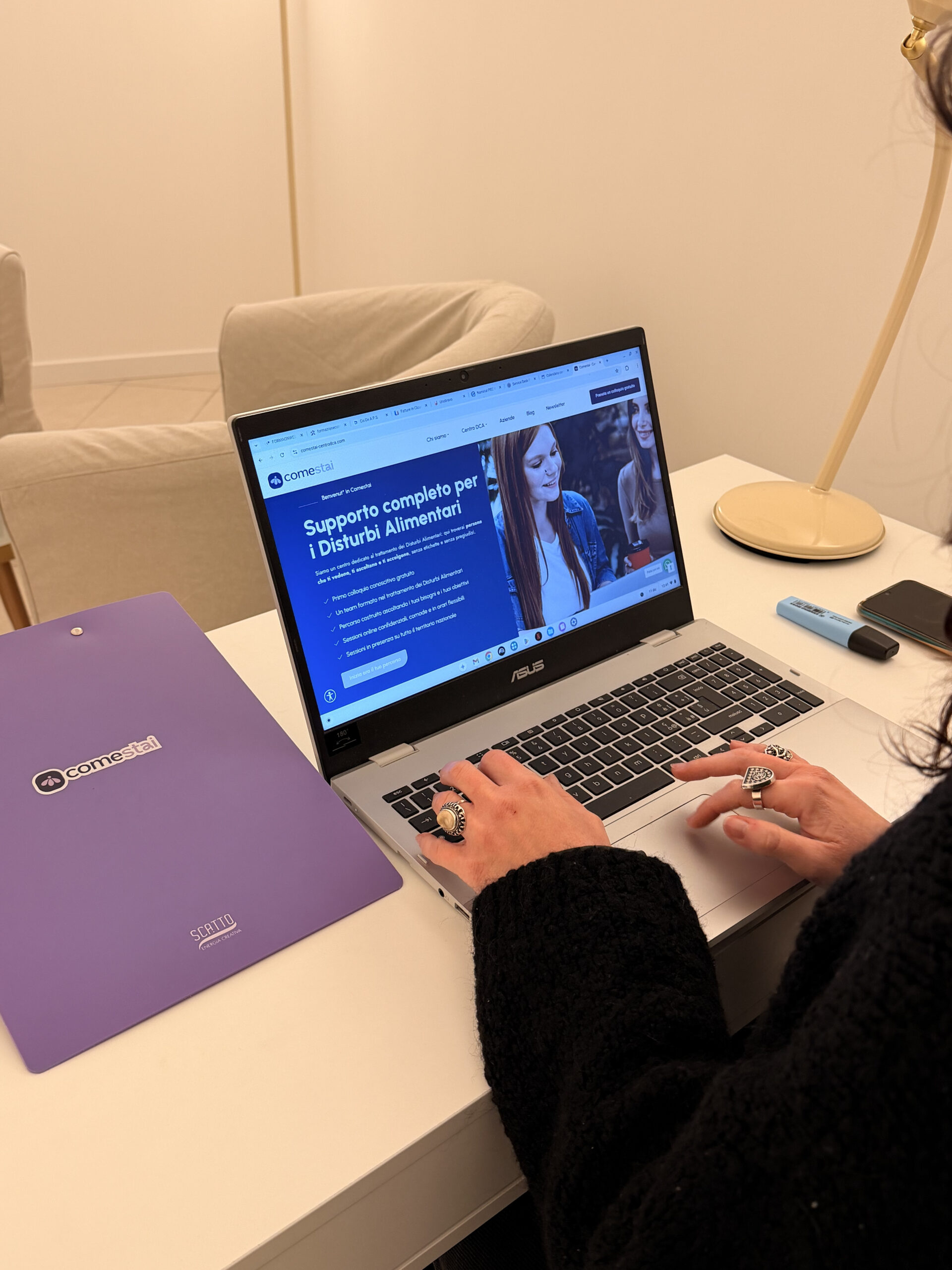 Comestai è un servizio di terapia online per chi soffre di Disturbi Alimentari o per chi vive accanto. Dopo il questionario e una chiamata conoscitiva gratuita, avrai accesso a tutti i servizi che offre e una serie di risorse psico-educative gratuite.